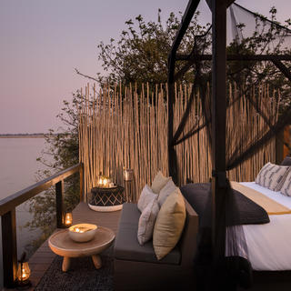 Die Safari Suite im Chiawa Camp ist KEIN Haus mit zwei Schlafzimmern, aber sie kann als atemberaubender Rückzugsort für junge Familien dienen, wo wir zwei Tagesbetten in die Lounge stellen. In der Nacht sind diese zum Schlafen eingerichtet.