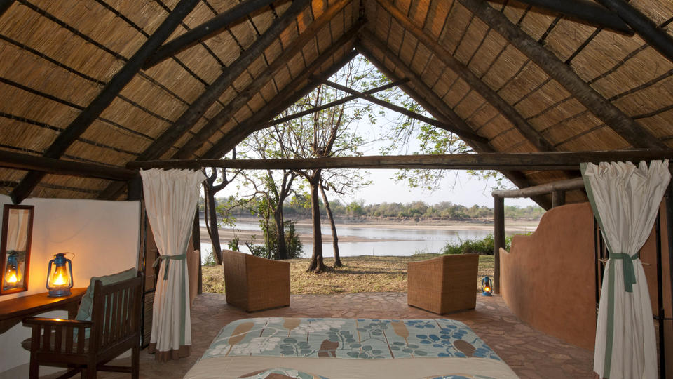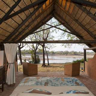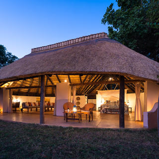 Die sechs Chalets sind geräumig und tagsüber völlig offen für einen herrlichen Blick auf den Fluss, abends werden die Constantia Schiebetüren zusammengezogen, um die offenen Zimmer-Fronten zu schließen. Die Badezimmer sind geräumig mit Doppelwaschbecken und Duschen, von denen Sie den riesigen afrikanischen Himmel genießen können.