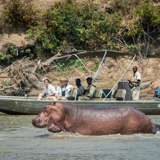 Nkwali liegt am Ufer der Luangwa eines herrlichen in Mäander fließenden Flusses mit Blick auf den Nationalpark, wo Leoparden entlang des Ufers wandern und oft vom Camp aus gesehen werden können. Auf dem privaten Grundstück von Robin Pope Safaris, außerhalb des Parks, befindet sich ein privater Wildtierbereich hinter dem Camp sowie ein exklusiver Zugang zum Park, entweder per Boot oder über den Ponton.