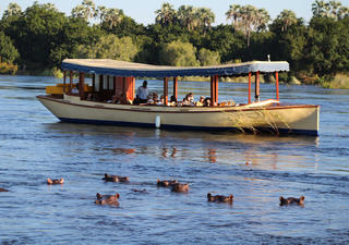 Lehnen Sie sich zurück und entspannen Sie sich bei einem kühlen Getränk und genießen Sie ein paar ruhige Stunden am Ufer des Sambesi-Flusses. Unser Mittagsbuffet umfasst Aufschnitt, frische Salate und eine große Auswahl an Keksen und Käsesorten, die vom preisgekrönten Palm Restaurant im Ilala Lodge Hotel serviert werden. Die voll ausgestattete Bar steht während der gesamten Kreuzfahrt zur Verfügung und die aufmerksame Crew steht Ihnen zur Verfügung.