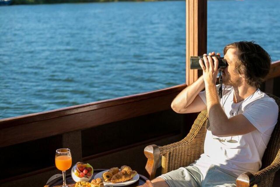 Weißt du, was man über den frühen Vogel sagt? Wenn Sie ein leidenschaftlicher Vogelbeobachter sind, sollten Sie sich diese Flusskreuzfahrt nicht entgehen lassen! Begeisterte Vogelliebhaber werden ihre Sichtungen im Vogelheft an Bord markieren und dabei ein köstliches kontinentales Frühstück mit Obstplatten, frischem Gebäck und einer Vielzahl von Käse und Keksen genießen. Hier wurden seltene Vögel wie die afrikanische Pitta und die Narina Trogon gesichtet, ebenso wie Hunderte von anderen Vogelarten. Die kompetenten und erfahrenen Guides führen diese frühen Morgenfahrten durch.