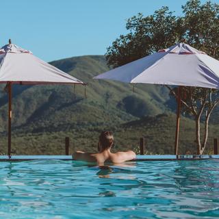 Jede Suite liegt 4 Meter über der Bergklippe und verfügt über ein Hauptschlafzimmer, eine geräumige private Lounge und ein luxuriöses Badezimmer. Durch Klapptüren gelangen Sie auf den umlaufenden Balkon, von dem aus Sie die Aussicht direkt in die Suite genießen können.