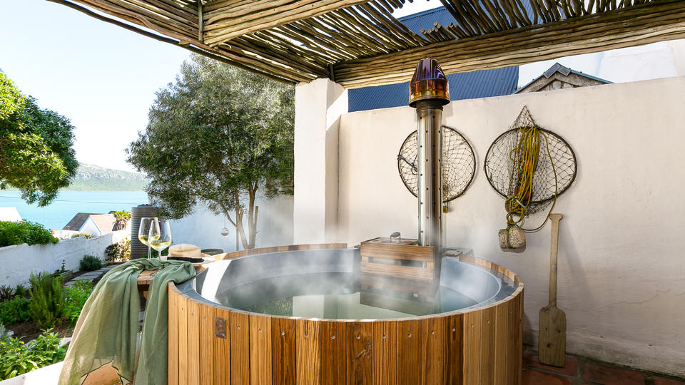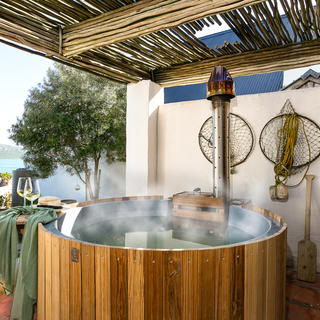 Panoramic Lagoon View with Wood-Fired Hot Tub Room