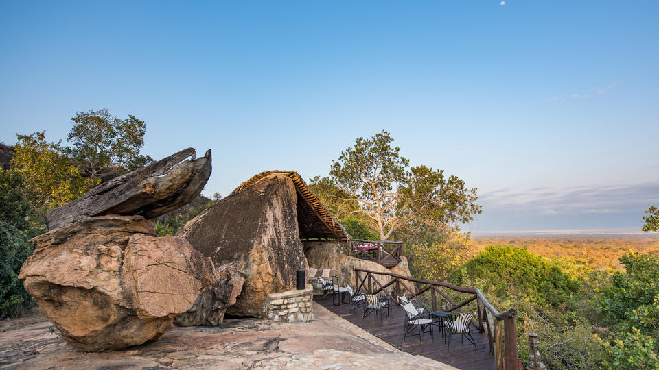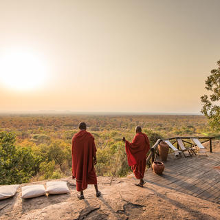 Das Maweninga Camp ist auf einem imposanten Granitmassiv im Nordwesten des Tarangire-Nationalparks errichtet und gehört zu den wenigen Unterkünften, die sich direkt im Nationalpark befinden. Einfach zu erreichen und doch entlegen genug, um das Gefühl zu bekommen, „alleine auf der Welt“ zu sein. Ein idealer Ort, um das Wildleben des Parks zu beobachten. An diesem privilegierten Fleck Erde können die Gäste weite Teile der Parklandschaft überblicken und herrliche Sonnenuntergänge über dem Manyara- und Burunge-See genießen, ob von der Terrasse des Zeltes, der einladenden Bar oder vom Lagerfeuerplatz aus. Maweninga ist ein komfortables Safari Camp mit einzigartig schöner Atmosphäre. Jedes der 16 Gästezelte verfügt über Doppelbett oder getrennten Betten, Ensuite-Badezimmer sowie lokal gefertigte, hochwertige Möbel. Alle Zelte sind auf Plattformen errichtet, die auf Stelzen mitten in die Granitfelsen gebaut sind. So gewährleisten die Unterkünfte einen minimalen Eingriff in die Natur, ein authentisches Buscherlebnis und trotzdem ein hohes Maß an Sicherheit. Oft besuchen Elefanten das Camp, um unterhalb der Zelte zu fressen. Trotz der Nähe zur Natur bieten die Zelte allen nötigen Komfort, den man aus der Zivilisation gewohnt ist. Qualitativ hochwertige Matratzen und Bettwäsche sorgen ebenso dafür, dass man sich gut von den Erlebnissen des Tages erholen kann. Das Camp ist so umweltfreundlich wie nur möglich und wird unter modernen ökologischen Gesichtspunkten zum Energie- und Wassermanagement sowie zum Abfallrecycling geführt. Der Generator ist nur für Notfälle vorhanden, sonst sorgt eine Solaranlage für den gesamten Strom, den das Camp benötigt.